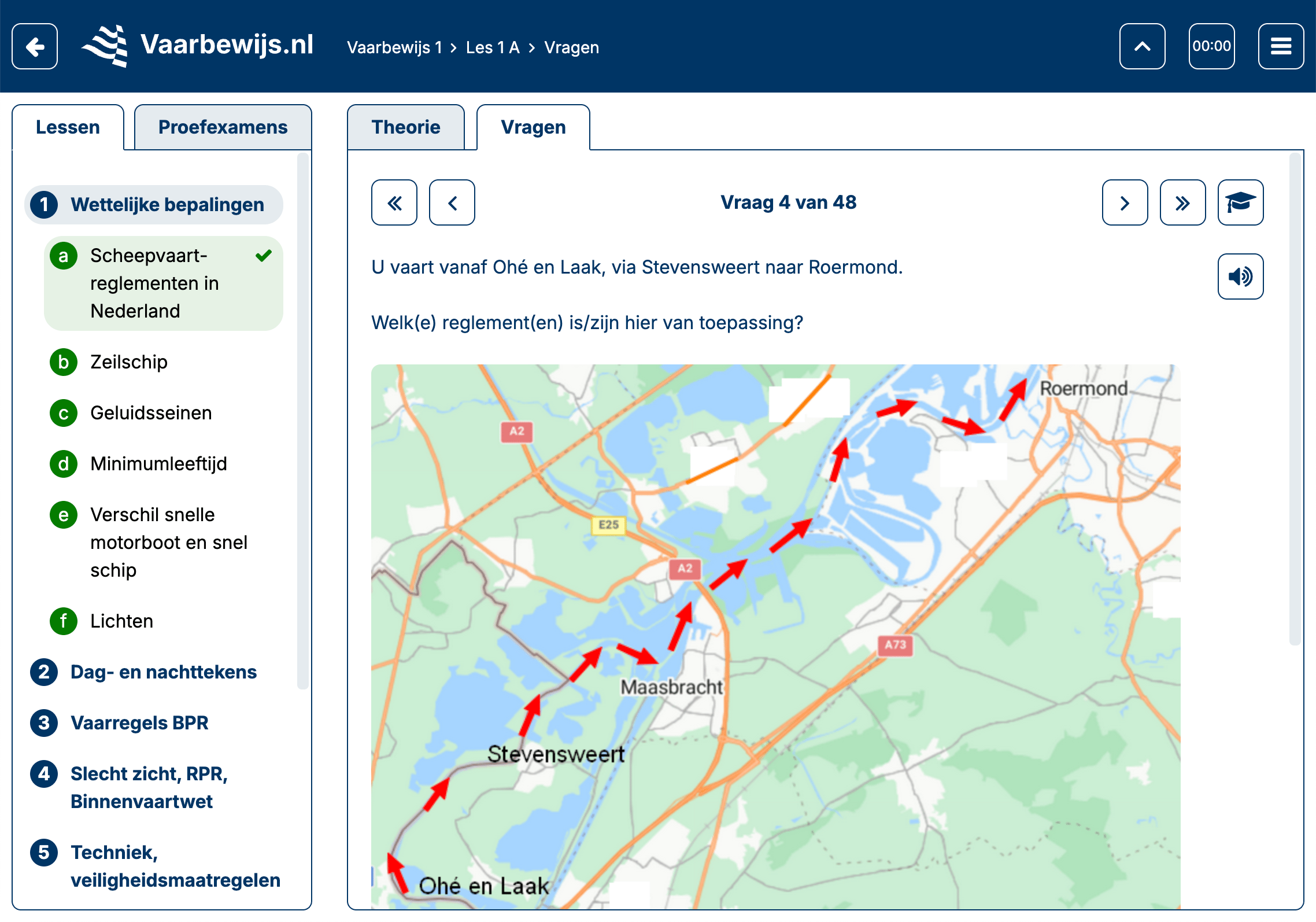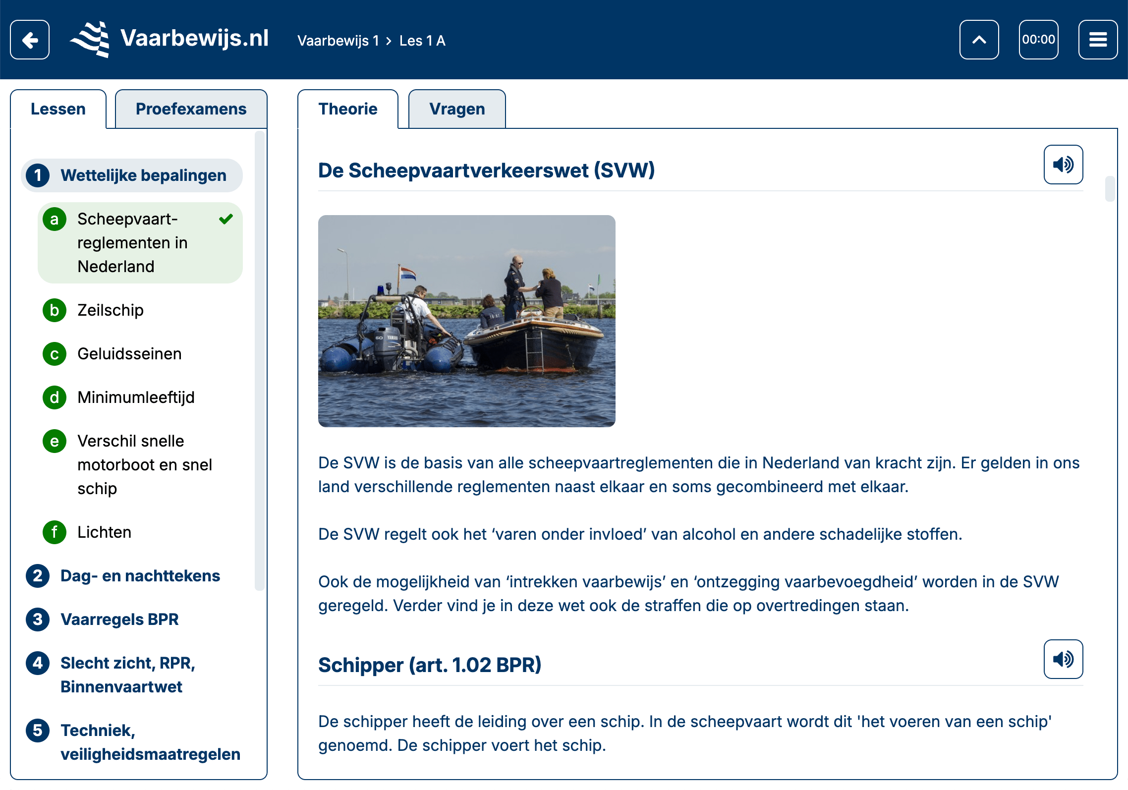Op Vaarbewijs.nl kun je de online cursus Vaarbewijs 1 volgen. Deze cursus bevat duidelijke tekst, de nieuwste vraagsoorten en 3D-beelden zoals in de examens, veel afbeeldingen en video's. Ook vind je 29 proefexamens met de nieuwste examenvragen in de cursus. Je volgt de cursus in onze gebruiksvriendelijke webapp die geschikt is voor smartphones, tablets, laptops en computers.