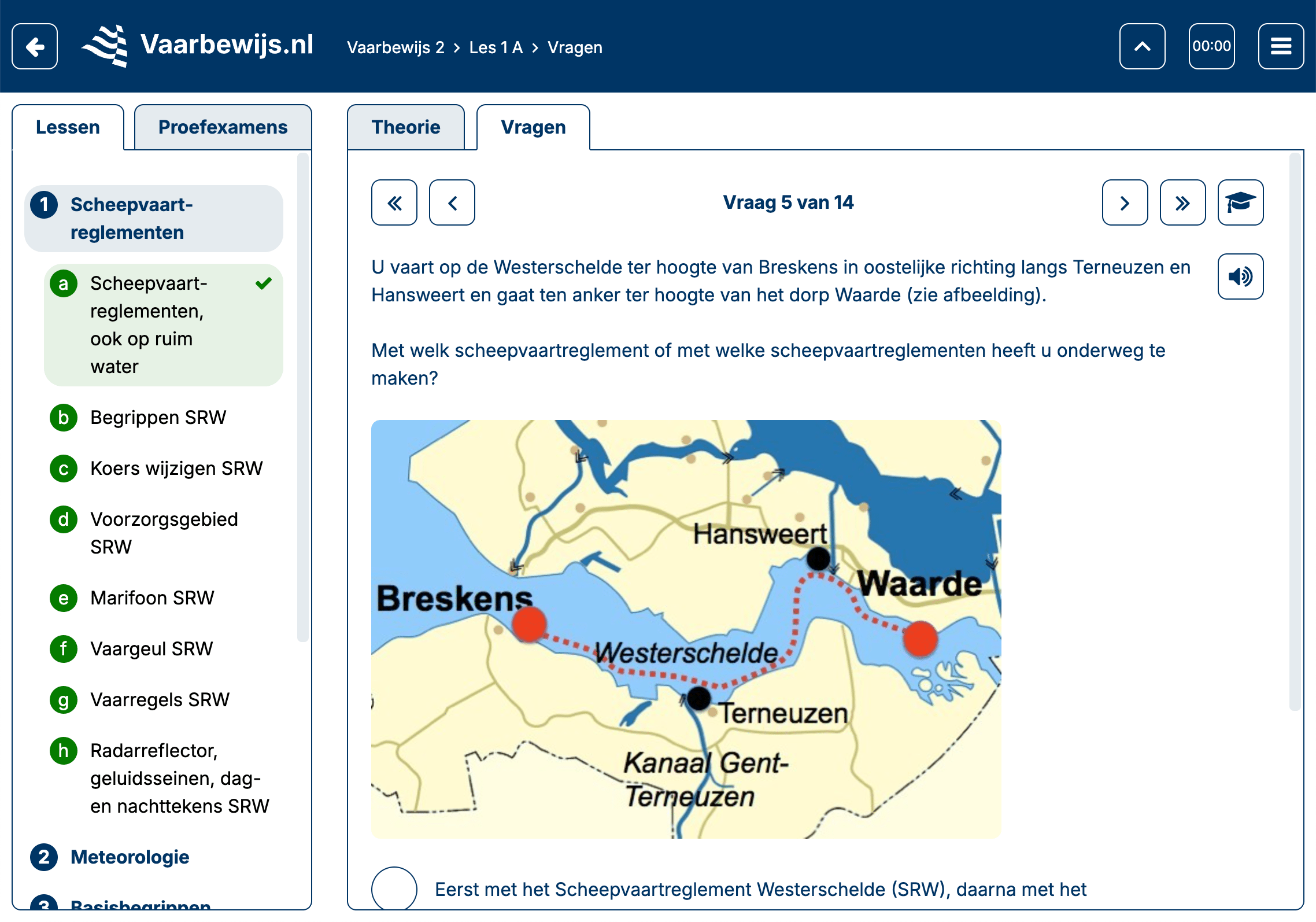 Zelf bepalen wanneer en waar je leert? Met de online cursussen van Vaarbewijs.nl oefen je flexibel, interactief en met materiaal dat 100% aansluit op het echte examen.